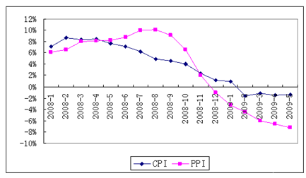 3、2009年5月CPI同比降1.4% 其中食品类降0.6%