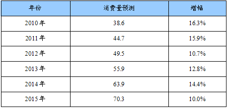 2011-2015年我国家具用塑料缓冲垫、脚垫产品消费量预测