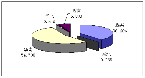 我国光学元件企业华东地区分布最多,但企业规模相对较小,在华南地区企业数虽然少,但企业规模大,其产量在全国占有很大比重。