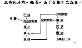 4)传统工艺采用水解法从含V205的浸出液中沉淀粗钒,粗钒再经过碱溶除杂后获得富钒溶液,将氯化铵加入富钒溶液中,获得偏钒酸铵。新工艺省去了沉粗钒工序,直接从含钒溶液中获得富钒溶液,缩短了流程,降低了能耗,也减少了含钒废水对环境的污染。新工艺包括:(1)溶剂萃取法提钒;(2)离子交换法提钒;(3)酸浸液净化一酸性铵盐沉钒。