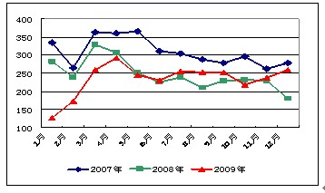 2009年进口原木2805.9万立方米,同比下降5.1%,但降幅比2008年减少了15.2个百分点,从09年2季度开始正增长。12月进口原木258.9万立米,同比增长43%,已接近历史月进口最高水平。2010年投资、内需和出口都将增长,预计原木进口数量将恢复到2008年的水平以上。