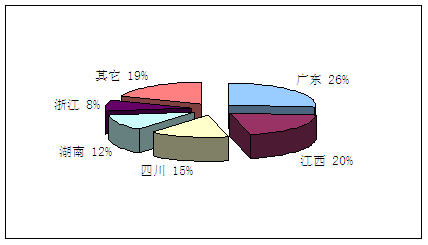 从葛根产量分布来看,主要是近些年人工葛根种植发展较快的广东、江西、四川、湖南等地葛根产量较大。其中广东、江西、四川为国内葛根的主产地。