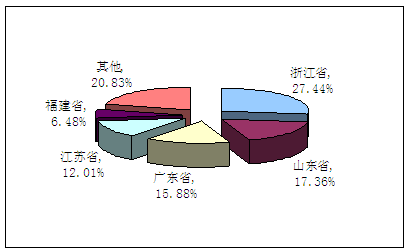 2009年工业清洗抹布产值地区分布统计图