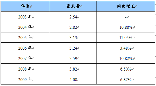 2003-2009年多维生素市场需求总量