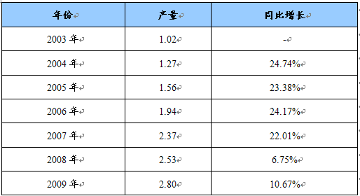 2003-2009年多维生素市场产量