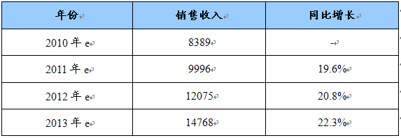 2010-2013年我国电子元件销售收入预测表 单位:亿元