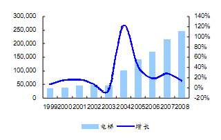 1999年-2008年我国国内电梯销量