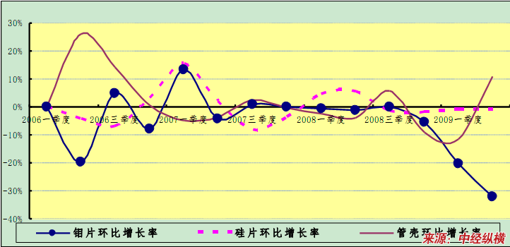 因主材不同品种价格变动差异大,为便于 分析 上图中管壳取KT44cT型号,硅片取Φ101.6×43070-85,钼片取Φ55×2.2。