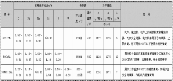 常用合金弹簧钢的牌号、化学成分、热处理、力学性能及用途