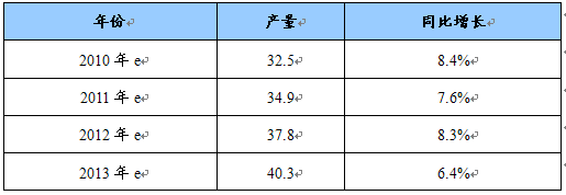 2010-2013年我国煤炭产量预测表 单位:亿吨