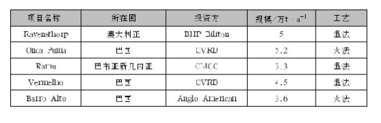以新喀里多尼亚红土矿开发为标志,从红土矿中生产金属镍迄今已经有100多年的历史了。近年来,由于不锈钢 行业 对镍的巨大需求,很多产镍大国都积极加大对红土矿的开发利用。较有影响的有菲律宾住友/三井公司2005年开始的CoralBay项目;2007年Inco在新喀照多尼亚正式启动的Goro镍项目,预计年产镍5.4万t;此外,在澳大利亚、印度尼西亚、巴西等国的一些镍矿资源的开发也在实施和 研究 中。