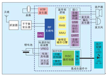 耳机芯片通常有两种:一种是基于闪存的芯片,它适用于小批量生产或者试产,其耳机软件存储在闪存中;另一种芯片则基于ROM,耳机软件存储在片上ROM里,而用户可配置关键码则存储在片外的EEPROM中。因此,在基于ROM的芯片中,耳机特性是在上电时从EEPROM加载到蓝牙器件中,而基于闪存的芯片则拥有能对软件进行升级以适应新手机的优势。但如今,由于有了广泛的互操作性测试,已不再需要在大批量生产中局限于采用基于闪存的芯片。目前大多数针对大批量应用的设计都已转向基于ROM以降低成本,并通过允许使用EEPROM存储代码来减少风险。