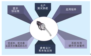 蓝牙耳机的设计不仅仅与芯片有关,还与无线芯片厂商(如CSR)提供的总体解决方案有关,需要对从板布局布线、软件、合适芯片的选择到参考设计、产品开发以及生产测试(包括互操作性测试)的整个端到端设计过程进行仔细考虑。此外,高质量的本地技术支持对于确保终端产品的成功以及客户满意度也非常重要。
