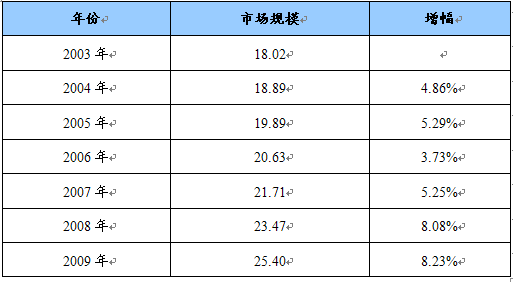 2003-2009年我国动态心电图仪市场规模表 单位:亿元