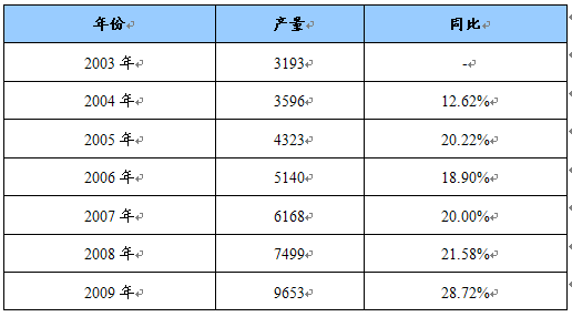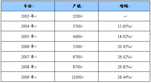 2003-2009年我国动态心电图仪产能规模表 单位:台