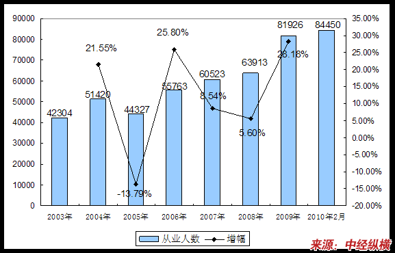 二、2003-2010年2月 行业 从业人员发展状况