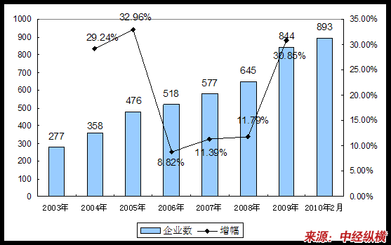 一、2003-2010年2月 行业 企业数量发展状况
