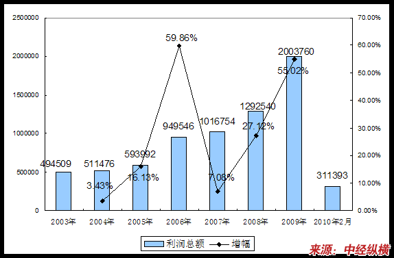 五、2003-2010年2月 行业 利润总额发展状况
