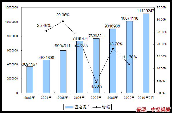三、2003-2010年2月 行业 固定资产发展状况