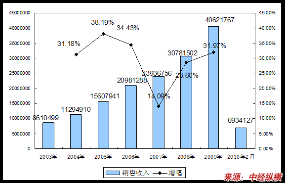 四、2003-2010年2月 行业 销售收入发展状况