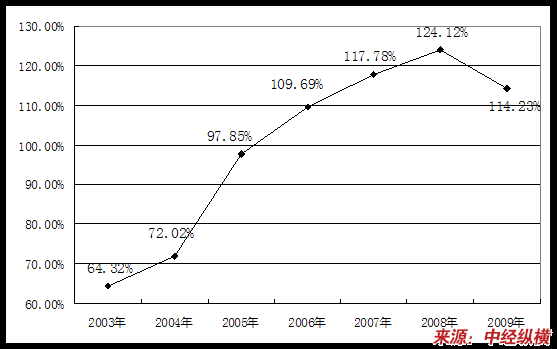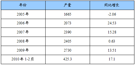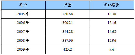 2005-2009年我国化学纤维产量增长情况