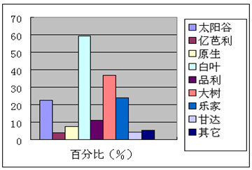 此外,各橄榄油品牌的竞争也是互具特色,各有千秋。品牌在各地市场表现不同,一些品牌在相应地区具有了绝对的品牌优势,例如西班牙白叶橄榄油在北京的品牌知名度达到70%以上,现将有一定知名度的各橄榄油品牌排列如下:白叶、乐家、大树、太阳谷、品利,最后就是亿芭利、甘达和华源生命。