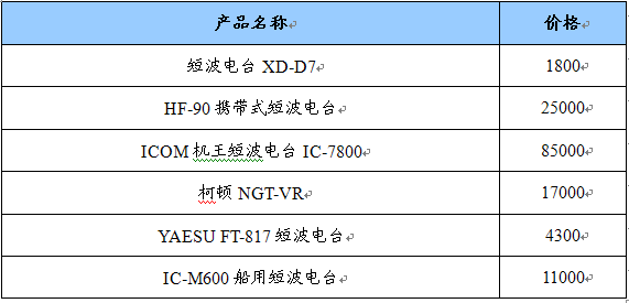 部分短波电台价格统计 单位:元/台