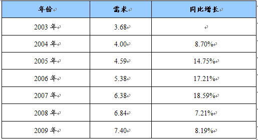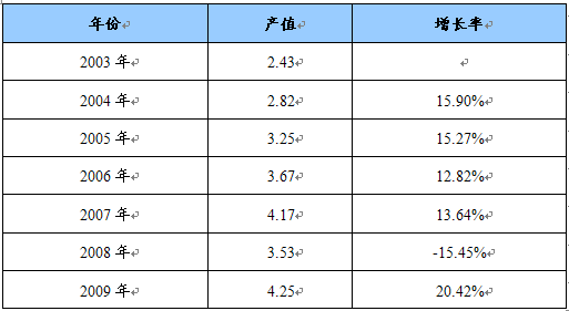 2003-2009年我国封条产值及增长统计 单位:亿元