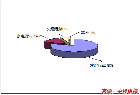 在复塑彩钢板消费中 ,建筑 行业 是复塑彩钢板的最大需求领域。各类建筑 ,包括仓库、超市、车站、机场、体育馆、商务楼、民宅等 ,都需要复塑彩钢板 ,主要用于生产瓦楞板、夹心板、门窗等。住宅和门窗需要的彩板厚度规格为 0 7mm和 0 8mm两种 ;活动房和厂房需要的彩板厚度规格为 0 4mm、0 5mm、0 6mm等。家电 行业 使用的复塑彩钢板主要以覆膜彩板(PVC)为主 ,主要用于冰箱、冰柜、洗衣机、消毒柜、微波炉、影碟机、高档装饰品等醒目的外壳。
