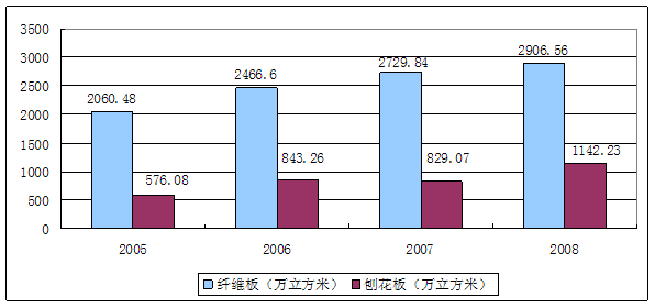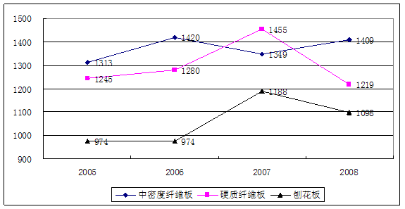 2009年木材供应量的减少会导致木材价格上升,进而带动下游相关产品价格上涨。受此影响,纤维板和刨花板的价格也会提高。但由于这两类产品市场竞争激烈,所以又会抑制价格的大幅上升。综合判断2009年纤维板和刨花板价格会有小幅上涨,波动幅度小于木材价格波动幅度。