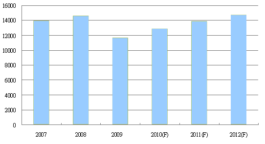 2009年全球光学元件市场延续2008年第四季的金融风暴,受到消费性电子产品需求委缩与产品单价下滑,造成全球光学元件产值大幅滑落20%,约达116亿6,900万美金,如下图所示。