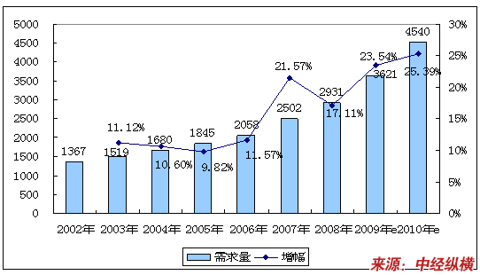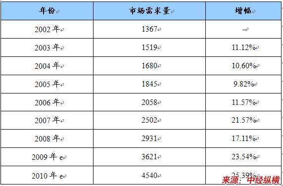 2002—2010年对讲机产品市场需求及预测表 单位:千台