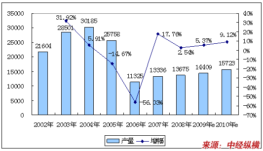 进入2005年,对讲机 行业 产量有所回落,产量为25758千台,比2004年下降14.67%,2006年 行业 产品产量继续下降,降幅达56.03%。造成 行业 产量下降的主要原因是前几年市场的急剧增长使得国内生产企业产能过大,加上出口的下降,导致了产品滞销,企业生产量的下降。2007 行业 产量开始上涨,2008年产量与2007年产量基本持平。同时由于生产成本上涨和人民币增值等负面因素的影响,中国的供应商从2007年的130家削减到了2008年110家。