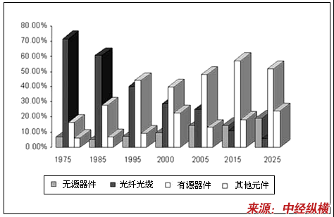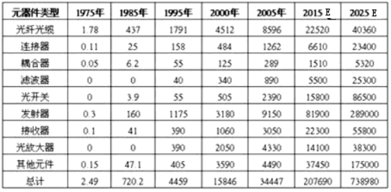 部分年份光纤通信产品市场分布的统计及预测