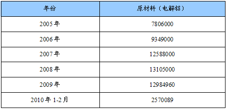 电工铝杆上游主要原材料(电解铝)应用领域需求量统计表