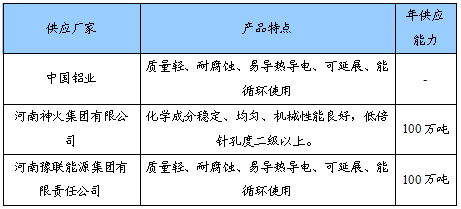 电工铝杆上游主要原材料(电解铝)供应厂家情况统计表