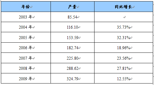 2003-2009年我国粉煤灰烧结陶粒产量统计表 单位:万立方米