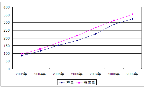 2003-2009年我国粉煤灰烧结陶粒供需平衡图