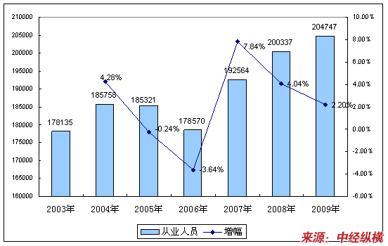 二、2003-2009年 行业 从业人员发展状况