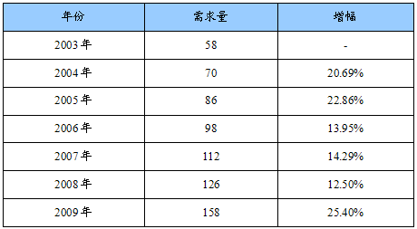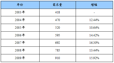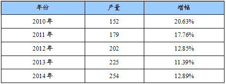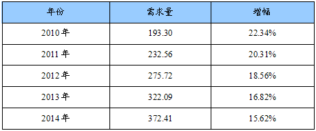 2010-2014年我国电机定子铁芯应用 行业 产品总消费量预测