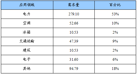 电路旋转连接器上游主要原材料1(精炼铜)应用领域需求量统计表