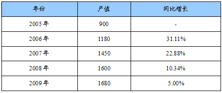 2005-2009年下游 行业 1(安防)产值增长情况统计表