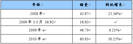 2008-2009年5月我国多功能立体声蓝牙耳机国内销量统计及预测 单位:万套