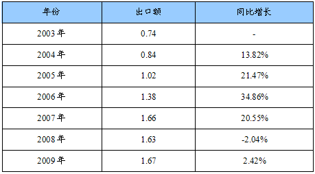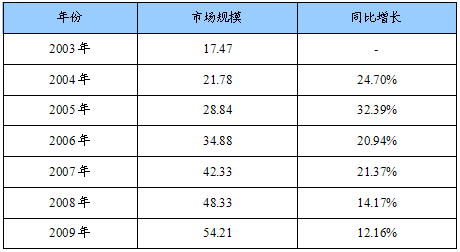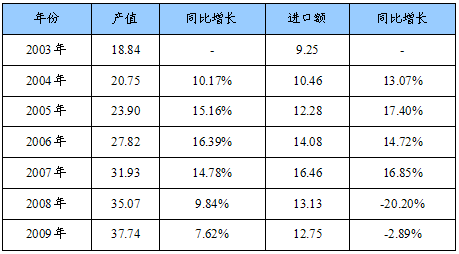 2003-2009年我国电脑针织机械市场供给总量统计表