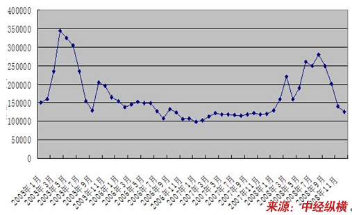 从图中可以看出,自2005年价格波动十分剧烈,2006年变化趋缓,2007年相当平稳,到2008年再次出现较大波动。几年来,钒的平均价格在10~15万元/吨之间,最低价格保持在10万元/吨以上。