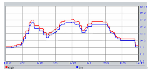从《亚洲金属网》2007年12月~2008年12月国际市场的五氧化二钒成交价格曲线来看,五氧化二钒最低价为7美元/磅(约合人民币11万元/吨);五氧化二钒最高价为18美元/磅(约合人民币28万元/吨)。