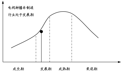 电视转播车从进入中国以来,产销量一直呈缓慢发展态势,直到2008年北京奥运的召开,对电视转播车的需求迅速增加,进入快速发展阶段,而广电产业对高清化的要求更是加快了电视转播车的步伐,未来三到五年内,电视转播车将由快速发展期进入成熟期。