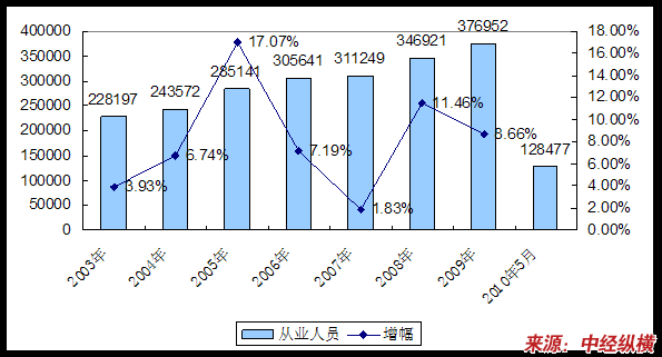 二、2003-2010年 行业 从业人员发展状况
