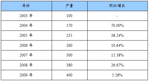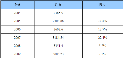 2003-2009年我国聚氨酯产量统计表