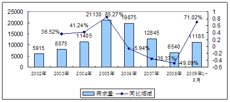 2002—2009年纺织 行业 电脑式恒温恒湿箱需求 分析 图